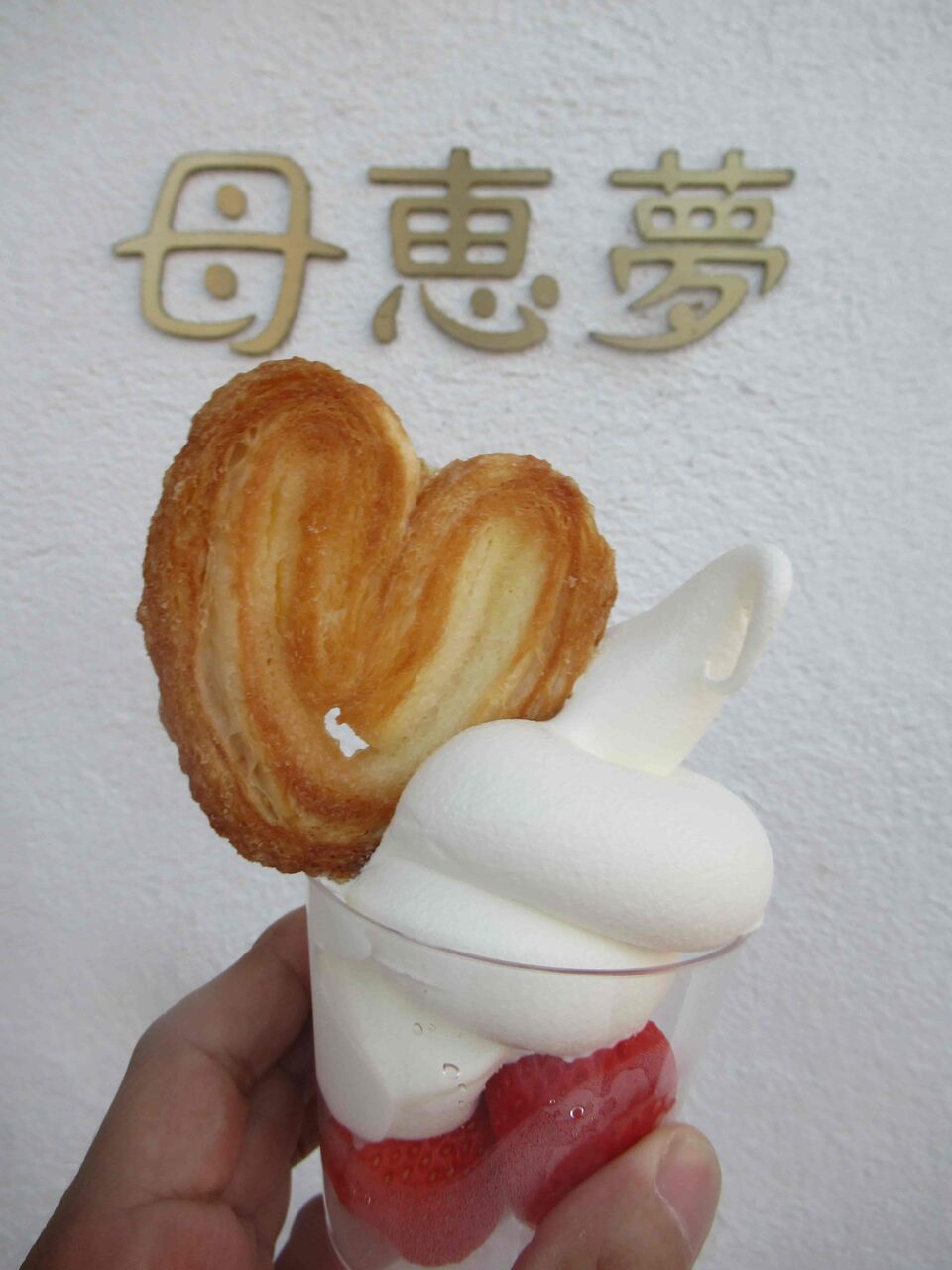 ソフトクリームはしっかりした甘さと粘度があり、ミルク感の強いタイプ。いちごは酸味が鮮やかで、甘さの中でも味を引き締めてくれます。トッピングのパルミエは、源氏パイのようなサクサク感が強く、ソフトクリーム以上に濃い甘味が特徴的。食感のアクセントとして相性もよく、満足度の高い仕上がりでした。